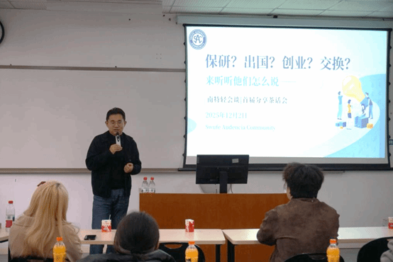 为促进优质经验的内部传承,项目于12月2日推出了“南特轻会谈”系列活动首期。活动邀请高年级优秀学生,围绕“保研·出国·创业·交换”等多元发展路径,为低年级同学进行“朋辈引领”。分享内容务实具体,涵盖了创业思考、跨专业保研准备、海外交换的跨文化适应等切身经验。这一平台旨在构建温暖、开放、可持续的项目学生内部支持网络,促进项目内部优质资源的流动与学生自我规划能力的提升。